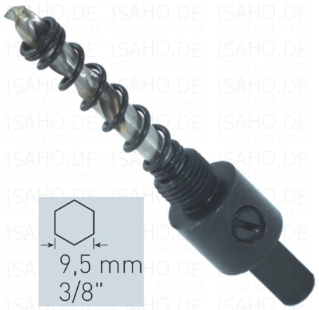 Aufnahme für Lochsägen bis 30mm, 9,5mm 6-kant - mit HSS Zentrierbohrer, Karnasch