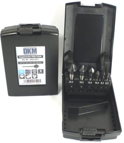 Inhalt: Kegelsenker Ø 6,3 - 8,3 - 10,4 - 12,4 - 16,5 - 20,5 mm