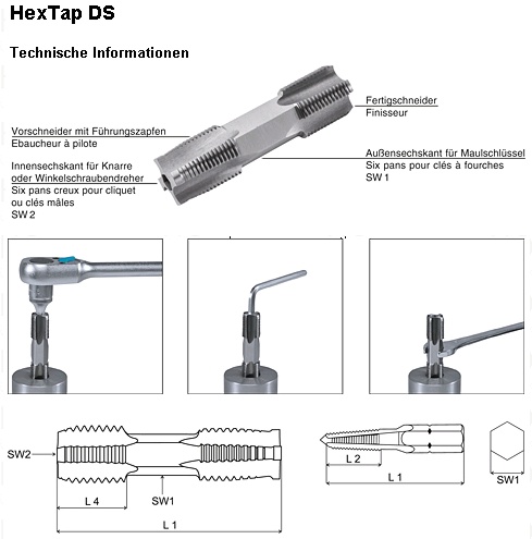 - HSS-G Mf 18 x 0,75 doppelseitiger Hand-Gewindebohrer, Multi-Drive Bit