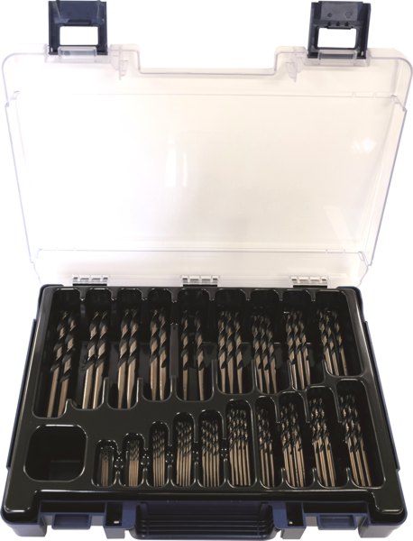 HSS-Co5 Spiralbohrer, 70-tlg. 3-Flächenschaft - Typ UNI, im Kunststoffkoffer, DKM