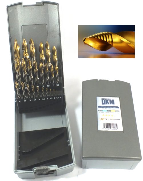 Bohrersatz aus 25 Spiralbohrern von Ø 1mm bis Ø 13mm, jeweils um 0,5mm steigend.