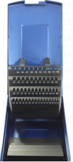 Platz für 50 Spiralbohrer Typ DIN 338 von 1,0 - 5,9 mm jeweils um 0,1mm steigend.