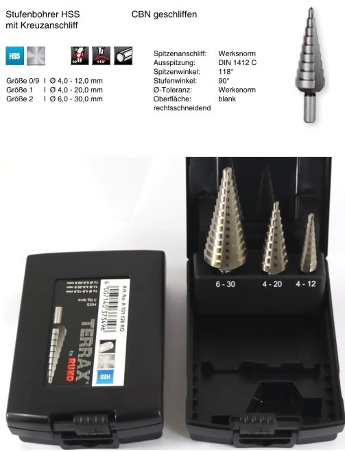 Stufenbohrer HSS, CBN-geschliffen, in Rose Kunststoffbox