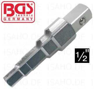 - 1/2" Außenvierkant-Antrieb mit Kugelarretierung, für z.B. Durchsteckknarren