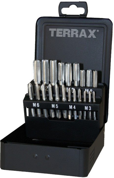 - je 3-teilige Gewindebohrer M3 - M4 - M5 - M6 - M8 - M10 - M12